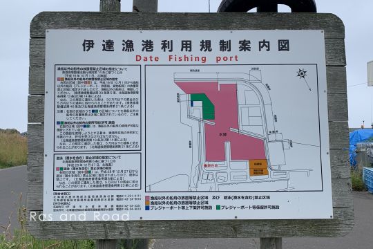 JR室蘭本線伊達紋別駅裏、気門別川河口に位置する漁港。1970(昭和45)年着工、1979(昭和54)年完成。