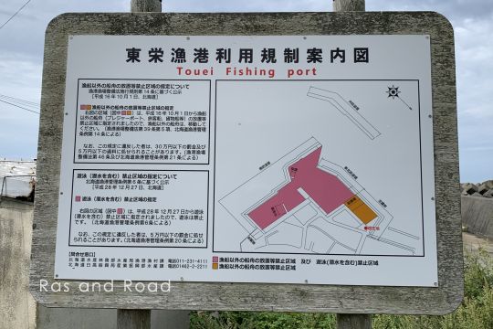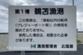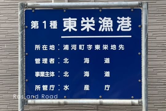 浦河港の少し北、黒っぽい砂浜に築かれた漁港。最初は1947(昭和22)年度から5カ年で簡易漁港が築かれた後、第5次漁港整備長期計画により1973(昭和48)年度から1986(昭和61)年度にかけて行われた大規模改修により現在の形になった。