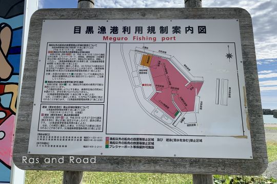 「黄金道路」の最も厳しい区間の中間地点に位置する漁港。黄金道路は1934(昭和9)年に開通し、現在はタニイソトンネル・新宝浜トンネル・目黒トンネル・荒磯トンネル・えりも黄金トンネル・咲梅トンネル・白浜トンネルで難なく通過できるが、ほんの15年ほど前までは越波を恐れつつ走る波打際の道だった。そんな環境だからか、漁港建設は1970年代に始まった。
