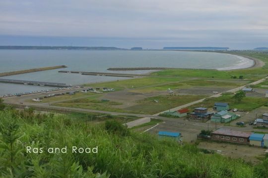 (2015年8月9日撮影)榊町いこいの広場から眺める浜中湾と榊町漁港。