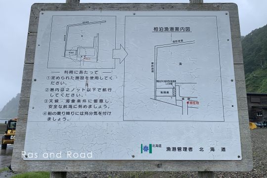 知床半島南岸の可住地域先端に位置する漁港。漁港前の合泊橋(集落名・漁港名は「相泊」だが橋名は「合泊」なのだ)が道道87号知床公園羅臼線の起点になっている。1973年の漁港指定後すぐに防波堤から建設が始まった。