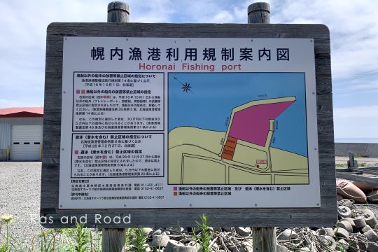 幌内川河口付近に位置する漁港。指定されたのは1953(昭和28)年だが、漁港建設が始まったのは1960(昭和35)年とのこと。幌内漁港起工式のほか、開基60周年記念式典や国鉄興浜線第一期工事起工式が行われ、雄武町は活気に湧いた年だったそうだ。