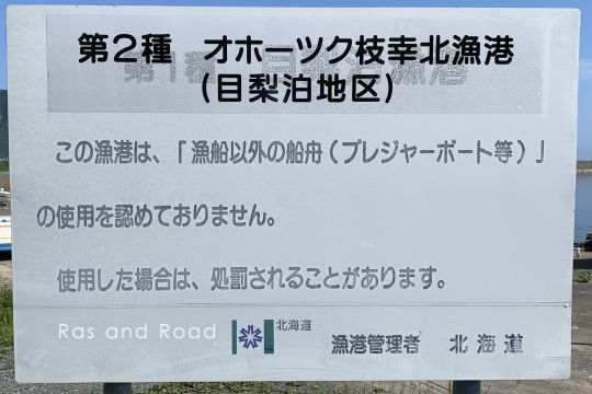 2016年3月25日付で第1種問牧漁港(1110037)と第1種目梨泊漁港(1110040)を廃止して新たに第2種オホーツク枝幸北漁港が設けられた。同時にオホーツク枝幸漁港も設けられたが、枝幸町の漁港をひとつにしなかったのは単に距離的な問題だろう。枝幸町市街地の北側と南側でそれぞれひとつに統合したことになる。