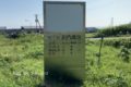 昭和58年8月と刻まれた旧問牧漁港基石。問牧漁港は1982(昭和57)年10月8日に漁港指定された。