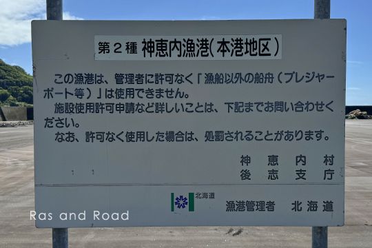 神恵内村の漁港。神恵内村は道内で2番目に人口が少ない自治体。当然に役場職員も漁協職員(漁協は隣の泊村とともに古宇郡漁協)も人手が限られる。効率的な漁港運営を目指してだろう、2016(平成28)年3月4日北海道告示第152号により4港が第2種神恵内漁港に統合された。
