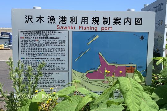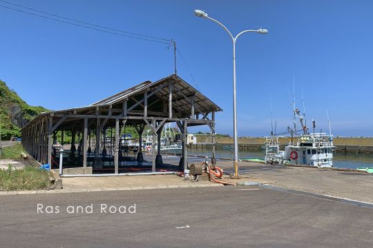 日の出岬を天然の防波堤とする位置にある漁港。防波堤が複雑に配置されており、季節風・潮流・漂砂等で苦しんできたであろうことが推定できる。