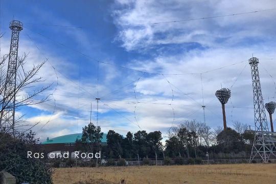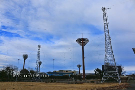 茨城県水産試験場漁業無線局 [Google Maps]    [地理院地図] のアンテナ。巨大なクモの巣だ。