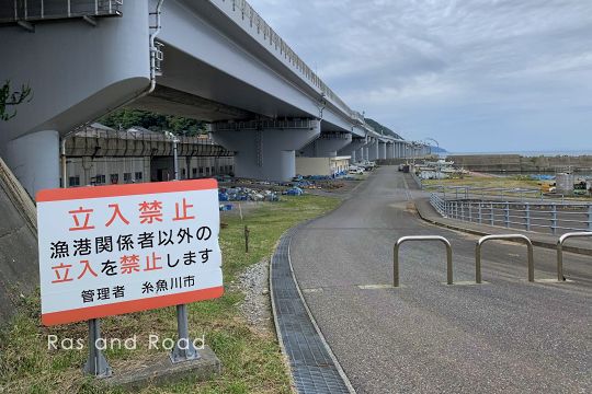 北陸道の桁下が漁具置き場・漁船陸揚保管場になっている。積雪期も安心だ。