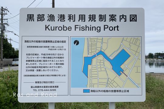 生地漁港として、1930(昭和5)年に着工、1938(昭和13)年に完成した。1969(昭和44)年に黒部漁港へ改称、1973(昭和48)年度を初年度とする第5次漁港整備計画により、現在の堀込式港湾に拡張整備された。