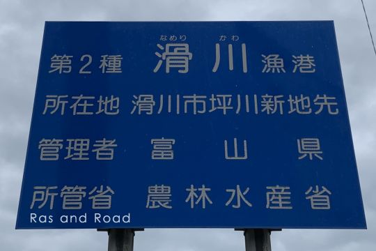 滑川の町はずれにある漁港。滑川付近は富山湾特有の寄り回り波被害を受けやすい場所であることから掘込式港湾が建設された。1946(昭和21)年度着工、1956(昭和31)年度一部供用開始。