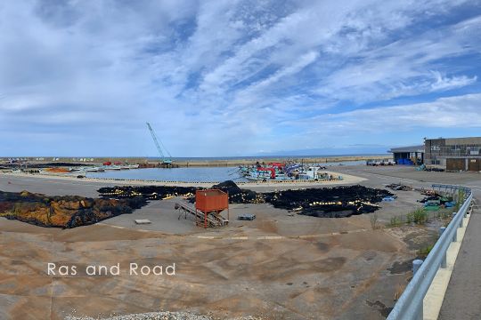 訪問時だけでなく各種空中写真を見ても、港頭に定置網の網が広げられており、漁網の補修を丁寧に行っている様子がうかがえる。