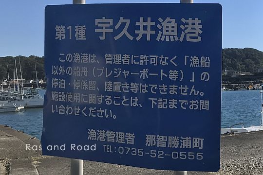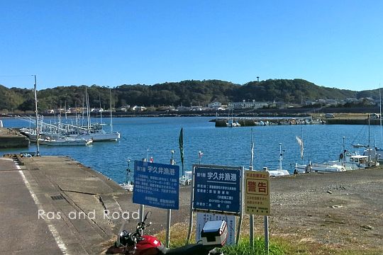 地方港湾新宮港に囲まれる漁港。宇久井はトンボロが形成した土地にある集落で、最小の砂州幅は160m程度だった模様。昭和30年代に南側が埋め立てられて現在の姿になった。トンボロの南側には地方港湾宇久井港がある。