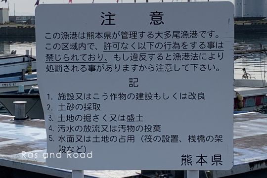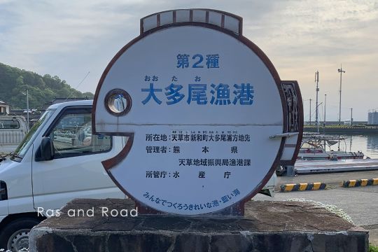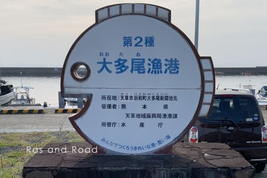 天草下島の中ほどで不知火海に面する漁港。漁港までの県道があるだけで国道は近くにないため、通りすがりの訪問者はいない。大多尾漁港を目指してやってくる人がほとんど(ごく稀に海岸線マニアがいる)だ。