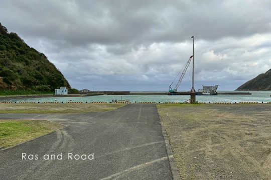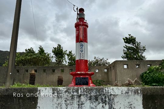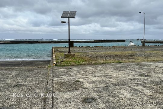 1987(昭和62)年10月初点の嘉渡漁港指向灯(前灯)。航路標識には指定されておらず、管理はおそらく町だ。珊瑚礁を掘り込んで航路を確保しているので指向灯は事故防止に役立つが、秋名地区に設置されていないのはどういう事情だろうか。