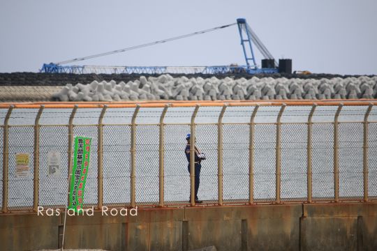 フェンスの向こう側でも警備員が厳重に見張っている。