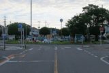 東側から眺める。右折レーンを分離島に暫定変更している。