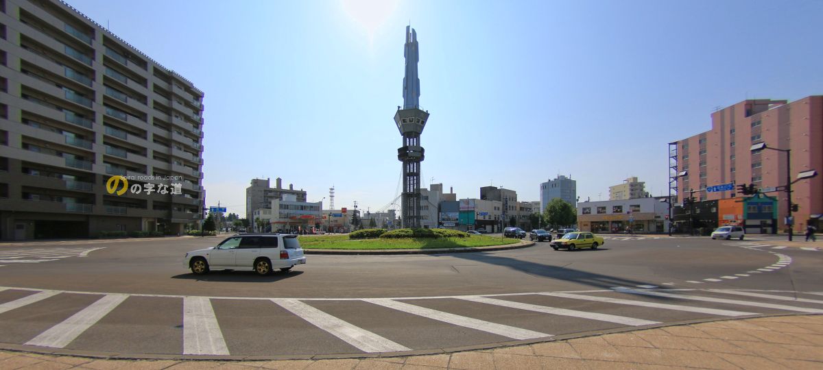 釧路の幣舞橋南詰にあるロータリー交差点の通行方式とも異なっていることに注意を要する。