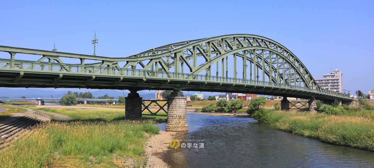 ブレースドリブ・バランスド・タイドアーチ橋、橋長225.4m、1932(昭和7)年11月完成。