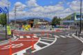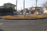 綾井南海住宅のロータリー交差点を南側から眺める。警戒標識「ロータリーあり(201の2)」は設置されていない。