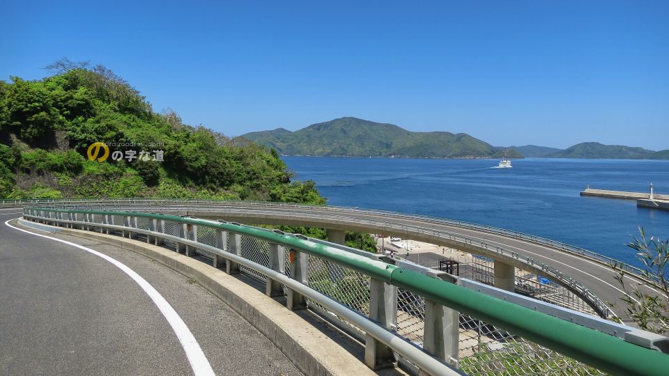 知夫里大橋は全長180m、半径約30mでループを描きながら標高差50mを一気に駆け上がる。臨港道路の終点付近(県道との交差点付近)で県道旧道が合流する。隠岐汽船や島前内航船が入港する前後には知夫里大橋で渋滞が発生するほどの賑わいとなる。離島はどこでも同じだが、とりわけこの島は船が着くのに合わせて島内が動き出し、出航と同時に静穏になる。