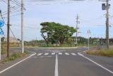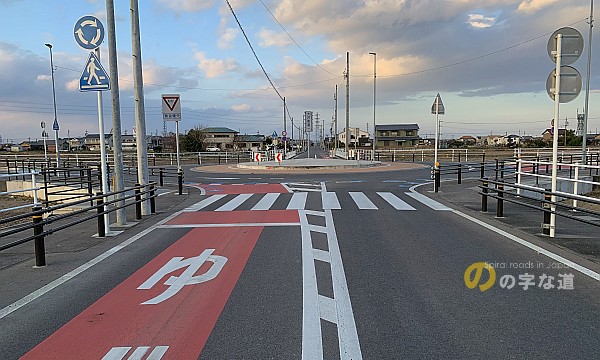 北側で、より接近して眺めてみる。南北方向の県道113号鹿伏兎大井線には分離交通島は設けられていない。