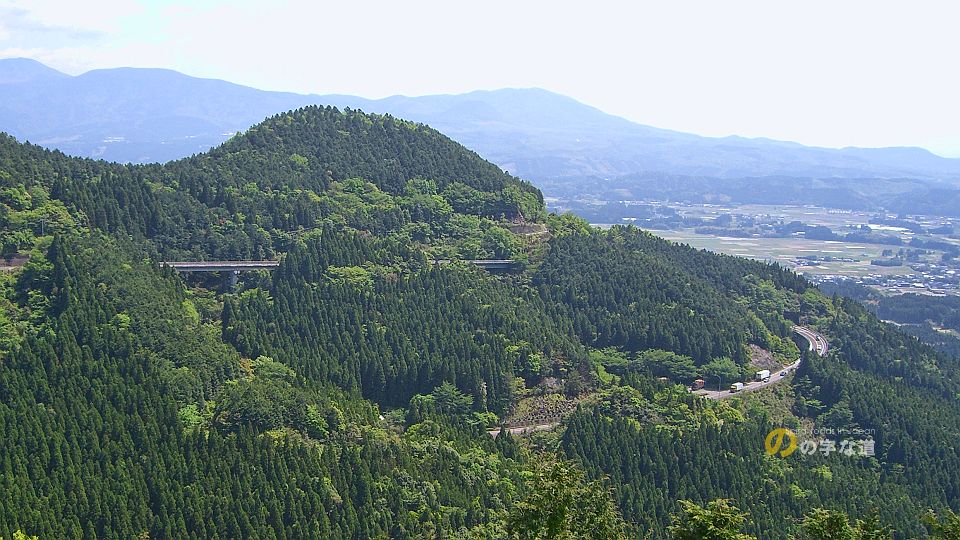 えびの展望橋南詰の駐車帯付近から見たのの字。