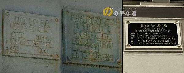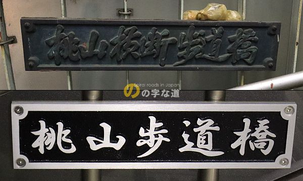 上は国道横断部の橋名板、下はJR横断部の橋名板。