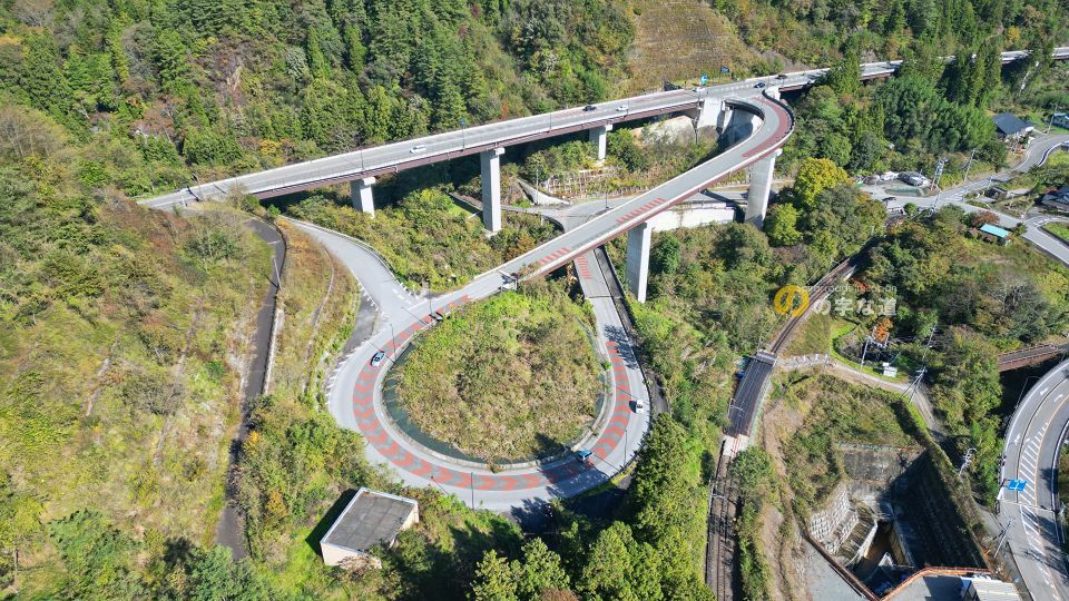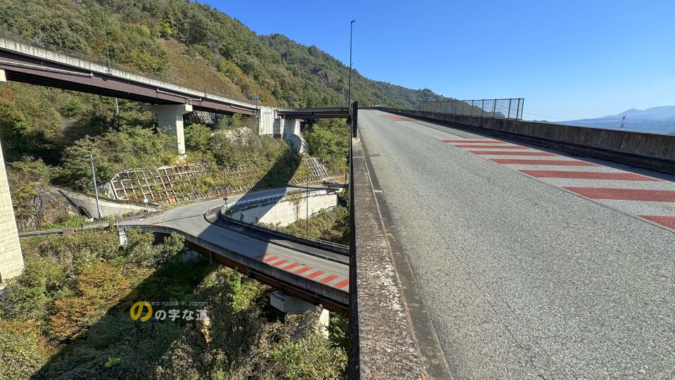 雁ヶ沢三号橋から眺める交差部。うーん、大規模ループ橋の撮影は難しい。