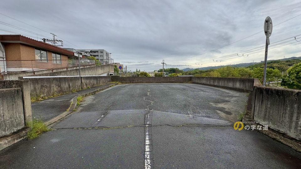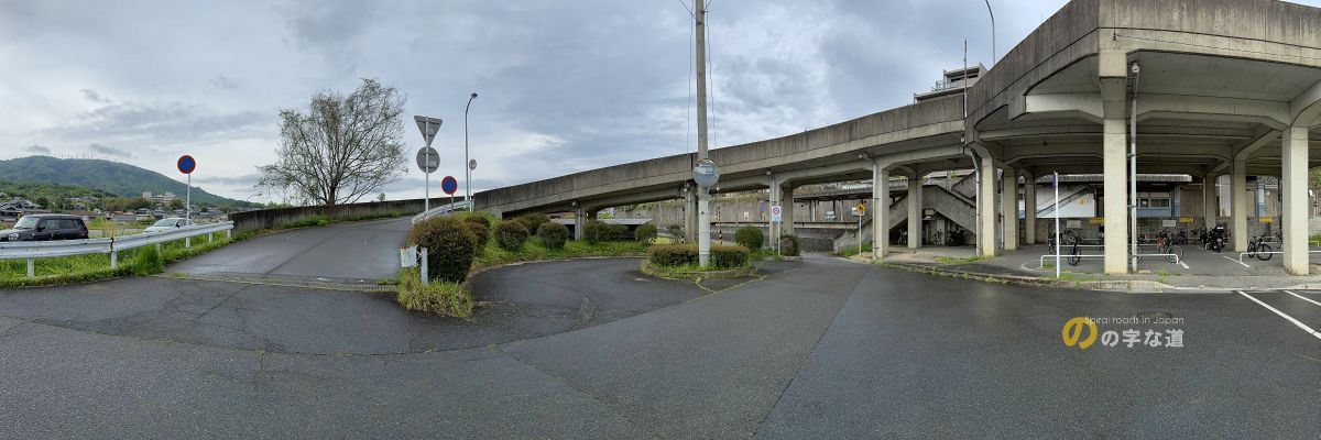 北側から眺める近鉄萩の台駅西口の斜路。こうして見ると「のの字」っぽいのだが。