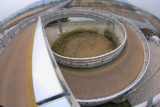 橋上から北側ループを俯瞰する。北側ループは浜坂北小学校の校庭に食い込んでいる。