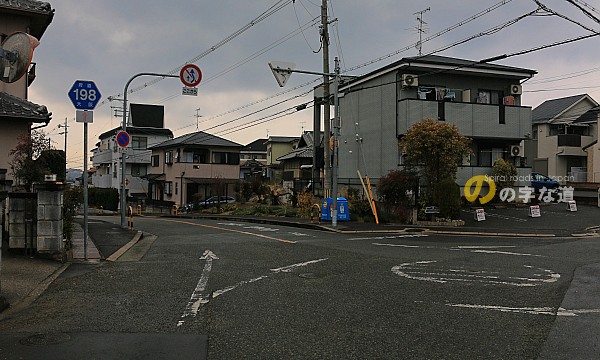 どういう事情か調査しきれていないが、市境から富田林市側の府道198号は中高野街道そのままのため幅員が大幅に変化する。それをうまく誤魔化す?ためにミニロータリー交差点が設けられたと考えていいだろうか。