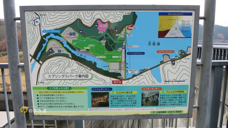 もっとも、設置目的は観光用ではなく、一応ダム管理用とのことである。なので、堤体直下の管理施設へ道が続いている。