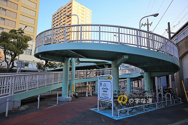 ループ部を別角度から眺める。ループ下は有料自転車置き場になっている。