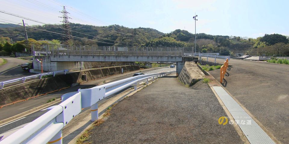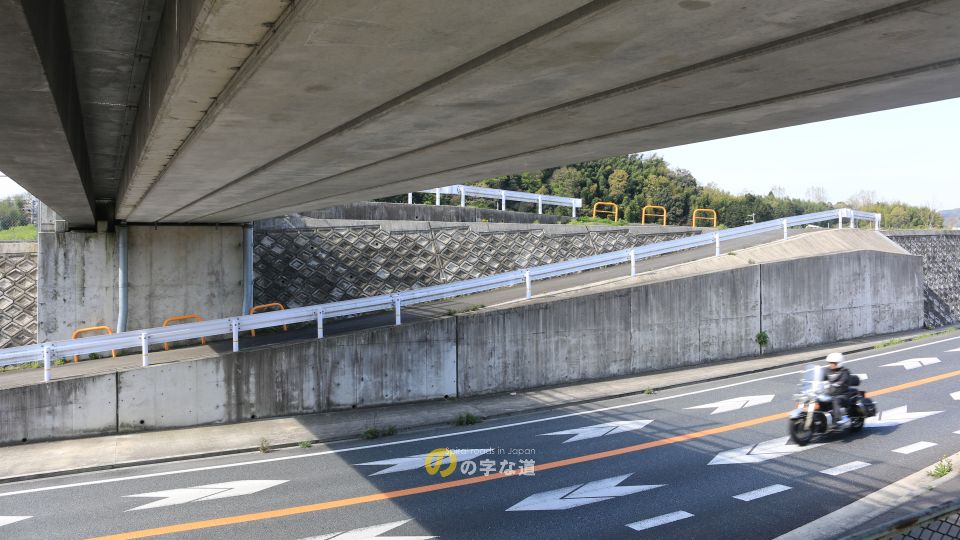 井平尾農道橋のループ部。鋭角カーブなので、この付近は幅員がたっぷり確保されている。