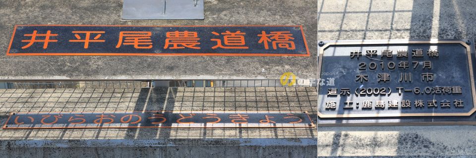 740(天平12)年から744(天平16)年まで都が置かれた木津川市(旧加茂町)。その大極殿(朝廷の正殿)跡の東およそ1km、国道163号を跨ぐ市道橋の一部がのの字を描いている。井平尾と書いて いびらお と読む。このあたりの大字名である。