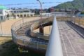 北東から眺める。この道路は流出方向(東行)の一方通行だ。