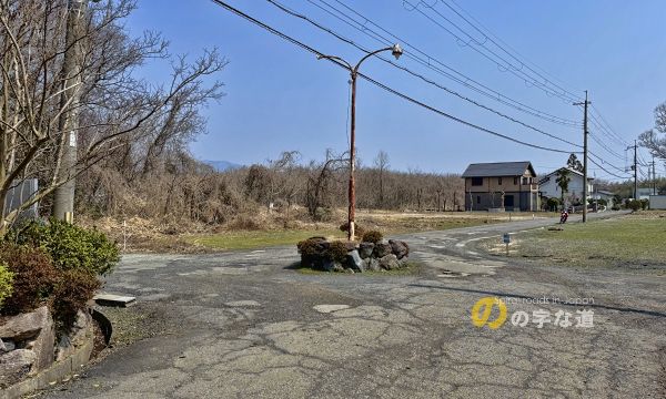 琵琶湖に注ぐ境川(酒波谷(さなみだに)とも言う)が形成した古い扇状地にできた河岸段丘面(水がなく農地に適さない)を開発・造成した別荘地内に円形交差点がある。