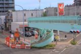 愛知県道497号田原豊橋自転車道線 伊良湖橋 の螺旋スロープを東側から眺める。かなり急傾斜であり、乗車したままの通行は無理。