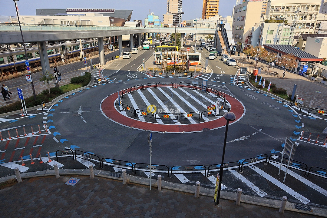 JR阪和線 和泉府中駅東口の駅前広場接続交差点がラウンドアバウトに改修された。