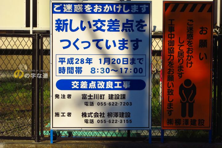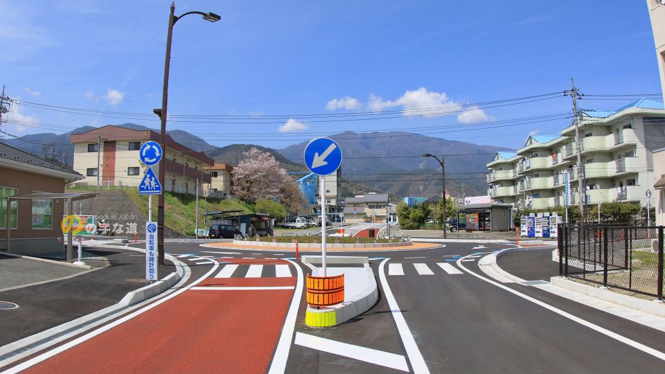 富士川町(旧鰍沢町)、峡南医療センター富士川病院の西側の交差点が改良され、ラウンドアバウトになった。2016年3月24日供用開始。2015年初冬に現地を訪れた際はラウンドアバウト化工事の真っ最中であった。
