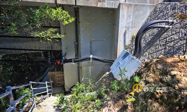 経年変化を測定しているのだろうか、センサーケーブルらしきものが這い回っている。