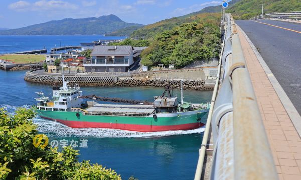 貨物船も通る。ガット船日幸丸(総トン数358トン、全長60m)。