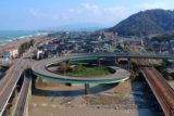 これは是非ともこの目で見なければと思って訪れてみたが、残念ながらまだ工事途中であったものの、坂路自体はほぼ完成しており、当サイトが定義する「のの字」ではなさそうである(一般車両は通行できないという意味でも定義から外れる)ことが判明した。甲浦駅の高架プラットホームは用途廃止となり、駅舎に隣接する位置に新設される乗降所の向きが「のの字」を描かないことを示しているのだ。