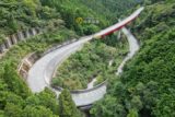 国鉄牟岐線として計画されていたが国鉄再建法により工事中断となり、その後第三セクターにより建設・開業となった阿佐海岸鉄道阿佐東線。2016年2月には徳島県がDMV導入方針を発表し、2018年には甲浦駅西側で鉄道線(高架)から一般道へ降りるための坂路工事が始まった。その坂路は、徳島県が発表した資料ではのの字を描くように見える。