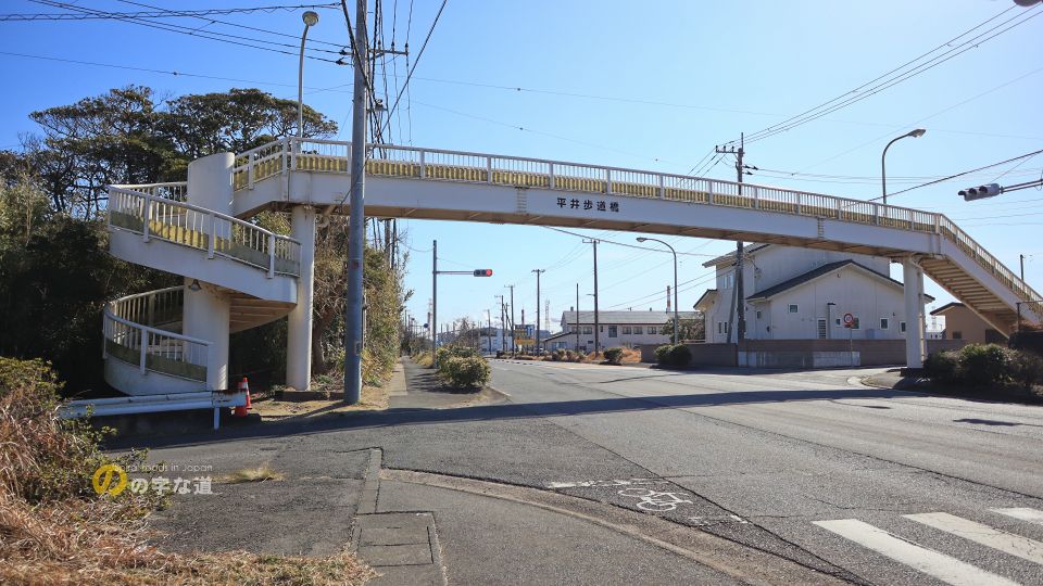 平井歩道橋全景。県道255号鹿島港線を越える。