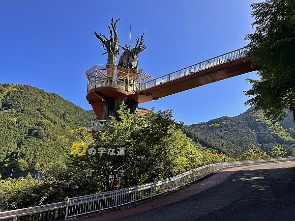 その建設過程を紹介する施設として1996年に国交省 近畿地整が整備した大滝ダム 学べる建設ステーションに「大杉の塔(タワーブリッジ)」「ミズノミハリダイ」が作られた。その階段がループしている。