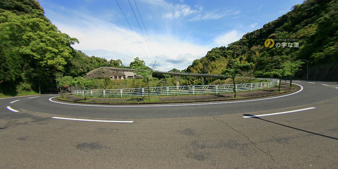 健康の森公園橋ループ全景。のの字中央を道路が貫く。奥には鹿児島射撃場がある。