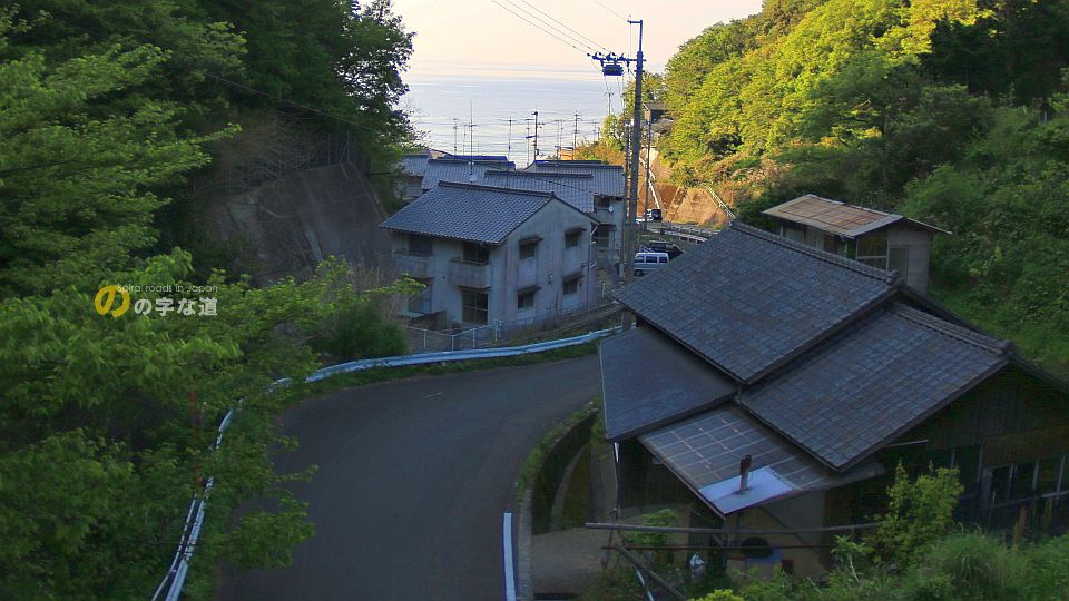 愛媛県大洲市(旧長浜町)、伊予灘に沿って走る夕やけこやけラインから少し内陸に入ったところにあるループ橋。道路ができる前は棚田とみかん畑の谷だったようだ。