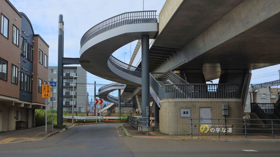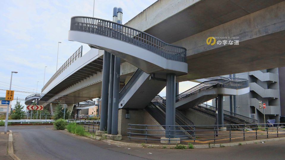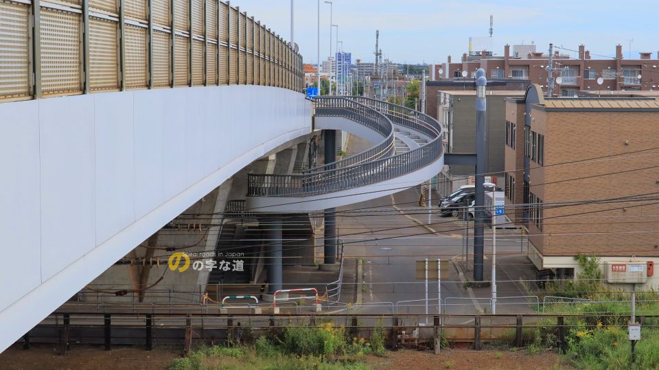 国道12号と札幌新道を結ぶ北郷通とJR函館本線の立体交差橋に設けられた歩行者用階段がループしている。