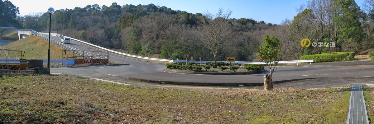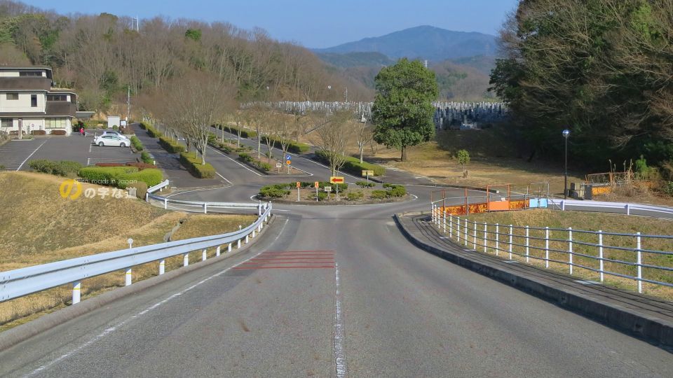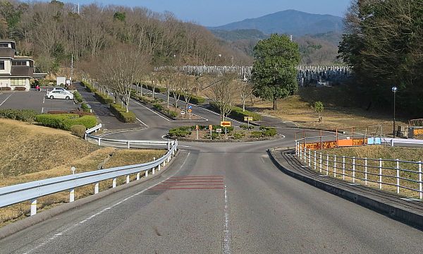 豊田市の公営墓地である古瀬間墓園が開設されたのは1977(昭和52)年頃であるが、それから長らくは南側入口(県道487号に接続する道路)のみ使われてきた。その後の園地拡張によりアクセス道路の増設が必要と判断されたのか、1987(昭和62)年頃に西側の市道に接続する道路が作られ、このときにロータリー交差点が設けられた。